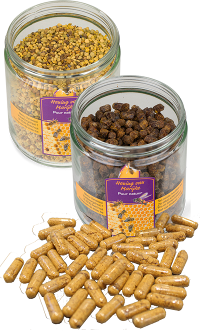 Wij zijn imkers en via deze site verkopen we honing en bijenproducten zoals stuifmeel, propolis en koninginnebrij (die wordt ook wel koninginnegelei, Royal Jelly of bijenmelk genoemd).